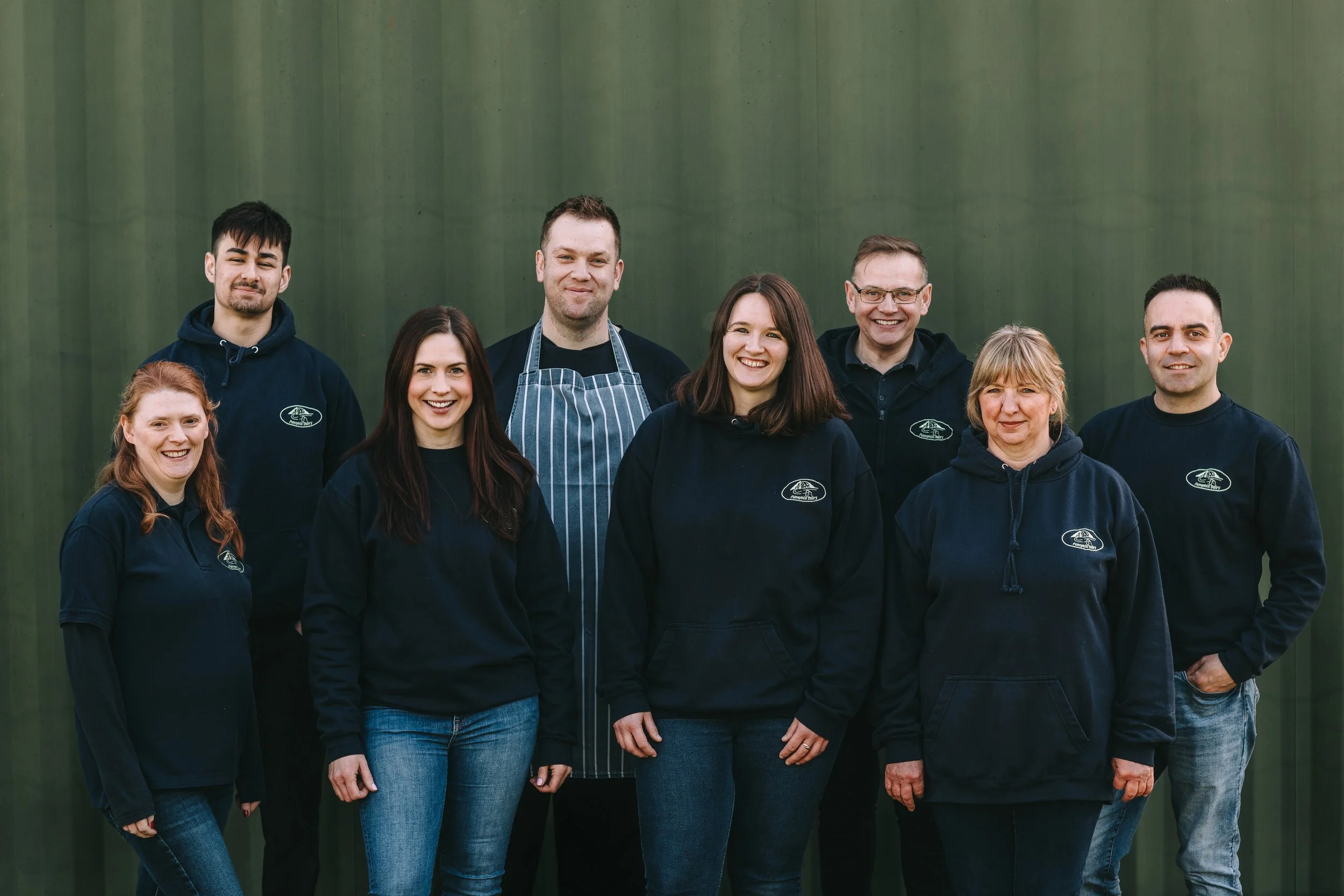 Miles-Butcher, Calum-Head Chef and Ice Cream Creator, Ed-Head Butcher, Sebastien-Parlour Café Manager. Kirsty-Farm Shop Team Member, Dani-Assistant Farm Shop Manager, Tash-Farm Shop Manager, Lulu-Owner.